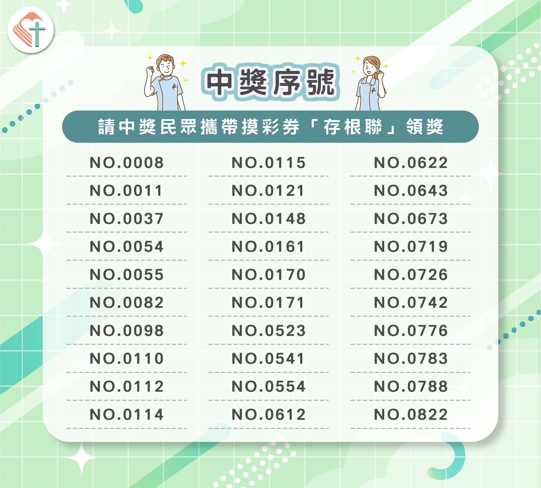 抽奬贈品:全聯禮券100元 領獎時間:114年11月14日至12月31日(週一至週五)上午8:00-12:00、下午13:00-17:00 領獎地點:新店耕莘 C棟3樓企劃室(請攜帶存根聯領獎) 洽詢電話:02-22193391轉65292 恭喜中獎民眾,感謝您的活動參與!
