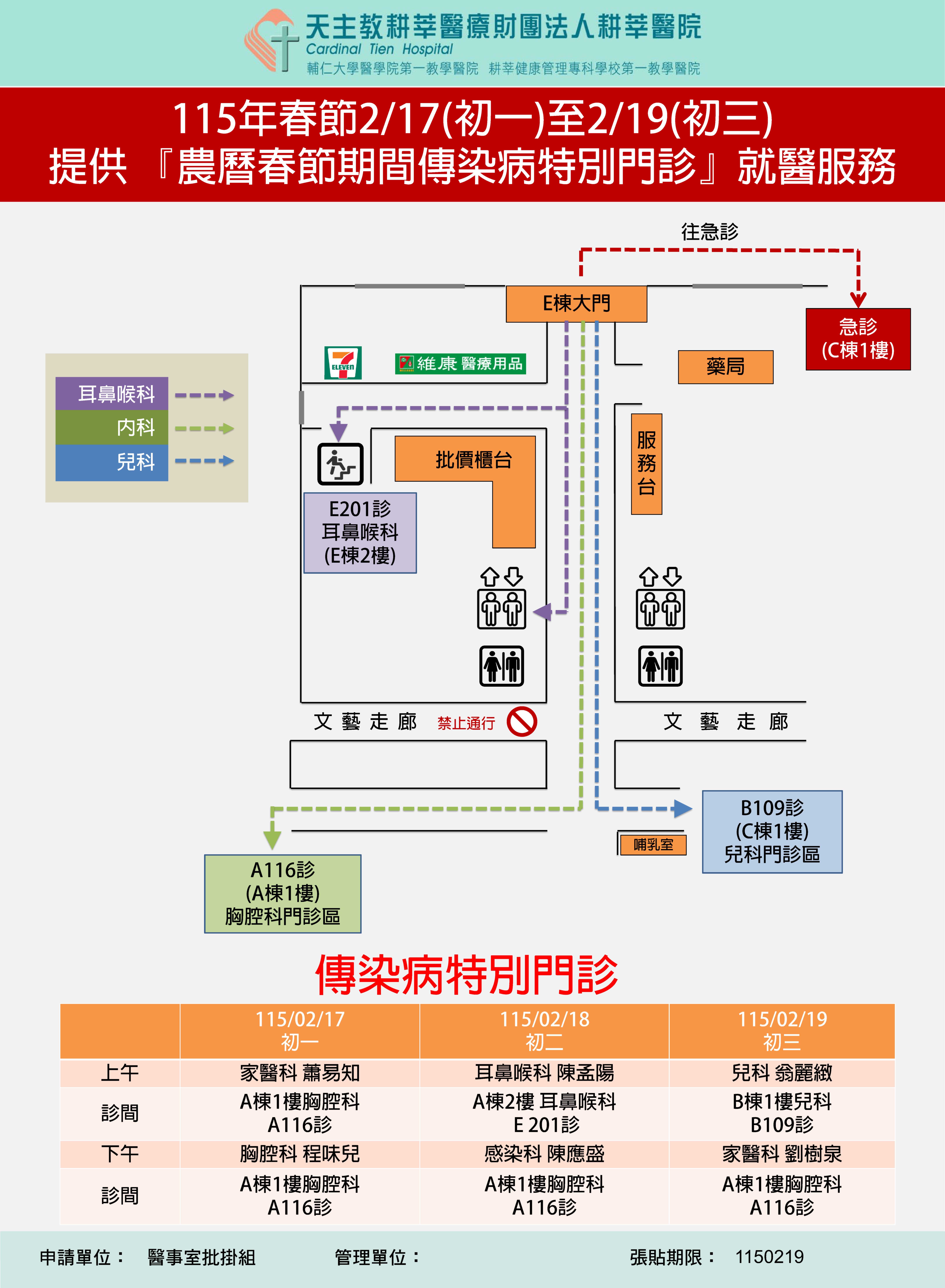 2026-02-17~19 初一至初三開設『農曆春節期間傳染病特別門診』就醫服務
