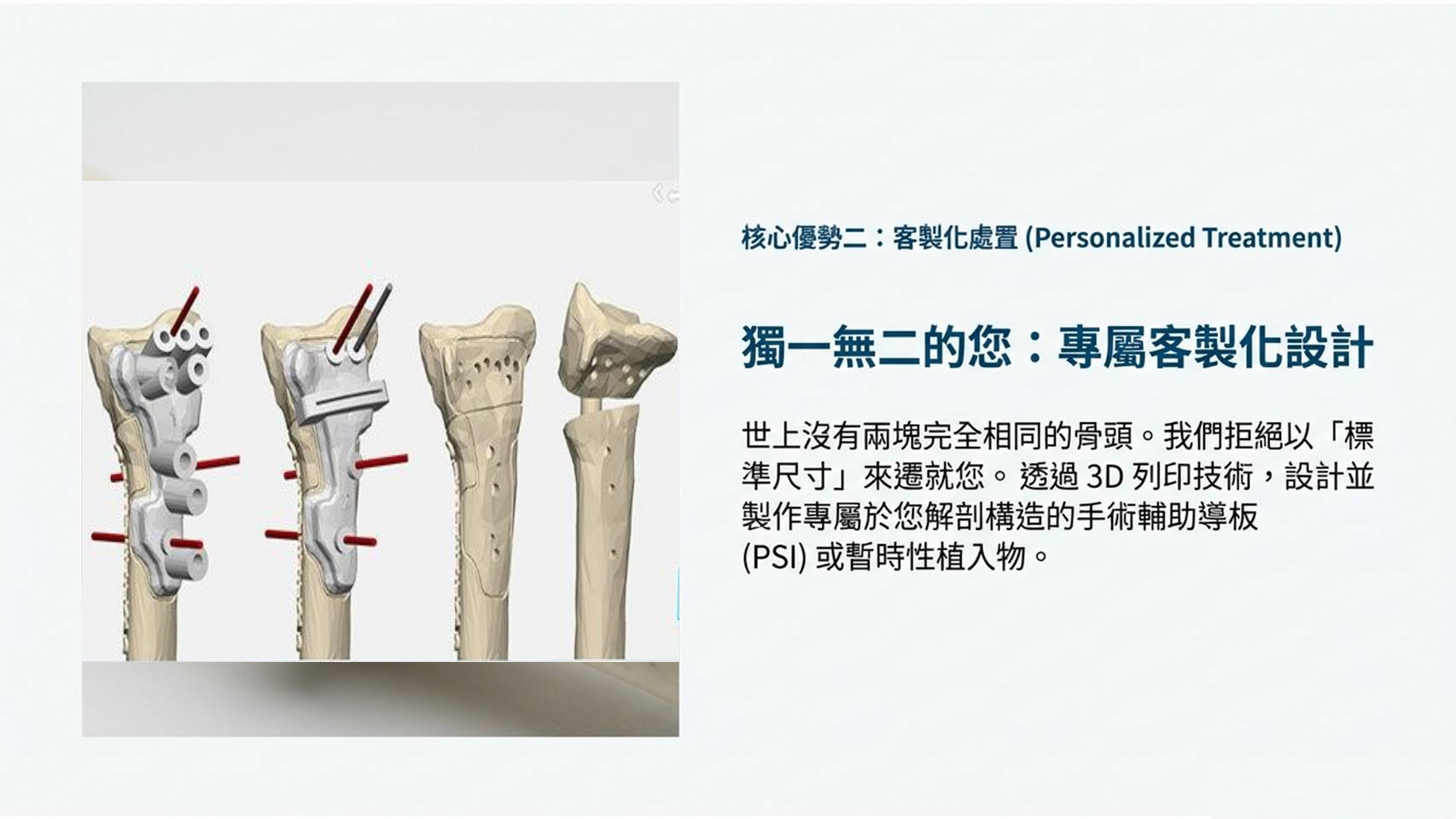效益:完美貼合骨骼構造,提升矯正以及骨折復位與植入物定位精確度。